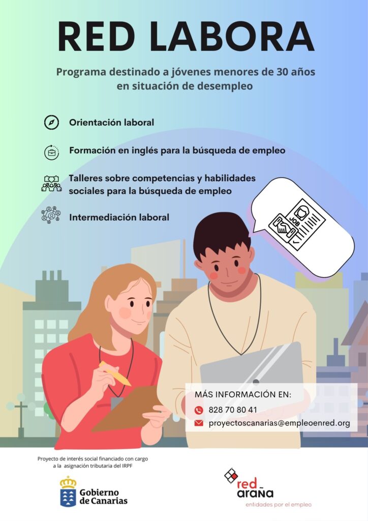 Red Labora es un programa de interés social financiado por el Gobierno de Canarias con cargo a la asignación tributaria del IRPF
